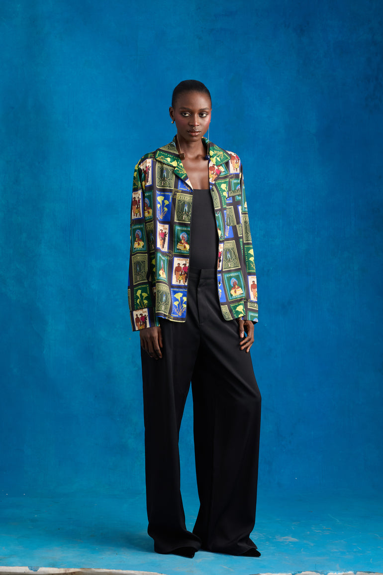 A classic satin shirt, evelated with HEATHE's Post Stamp Print. Style but with a story. The shirt's relaxed fit makes it versatile for both day and night.