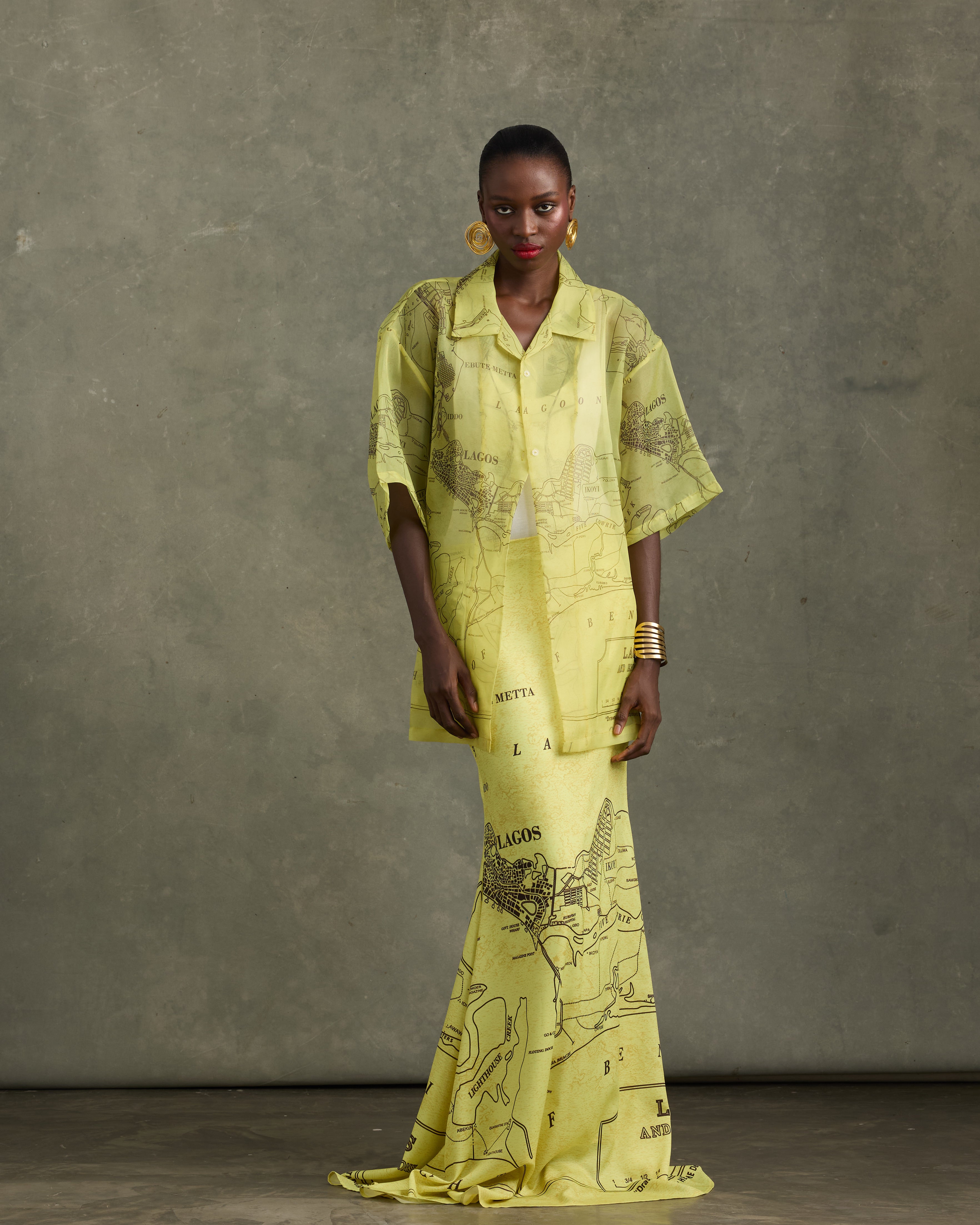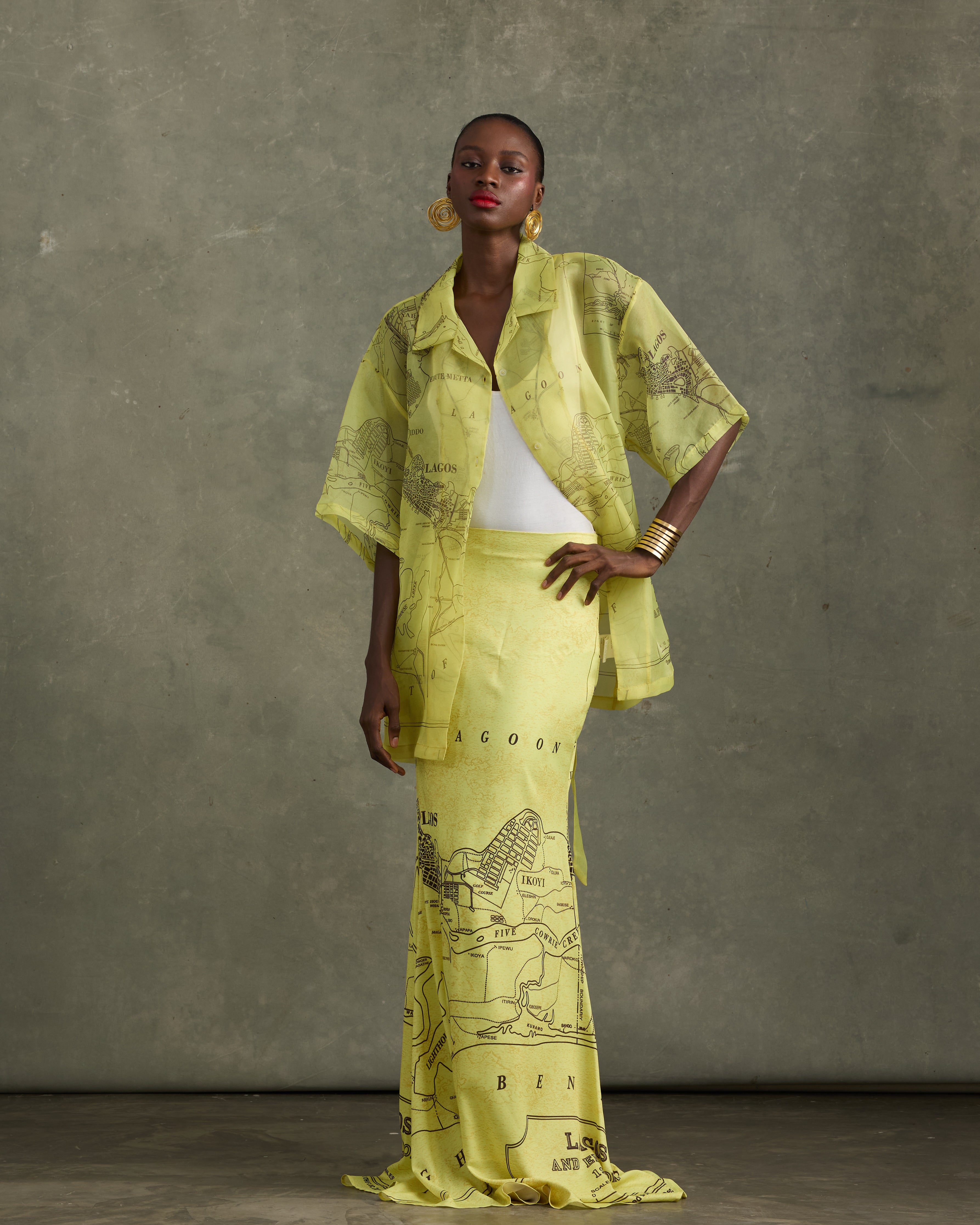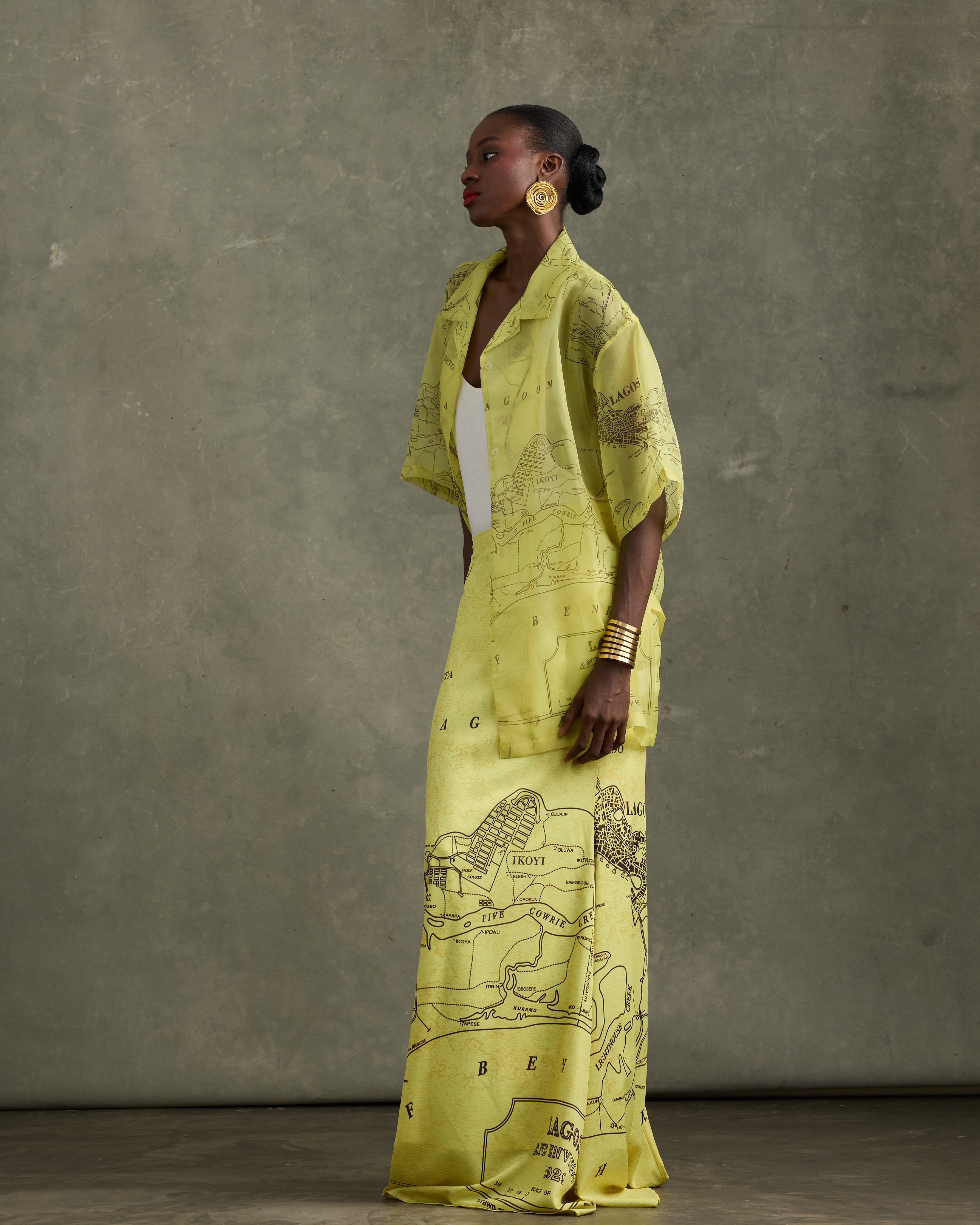 OLD LAGOS MAP SKIRT BUTTER YELLOW