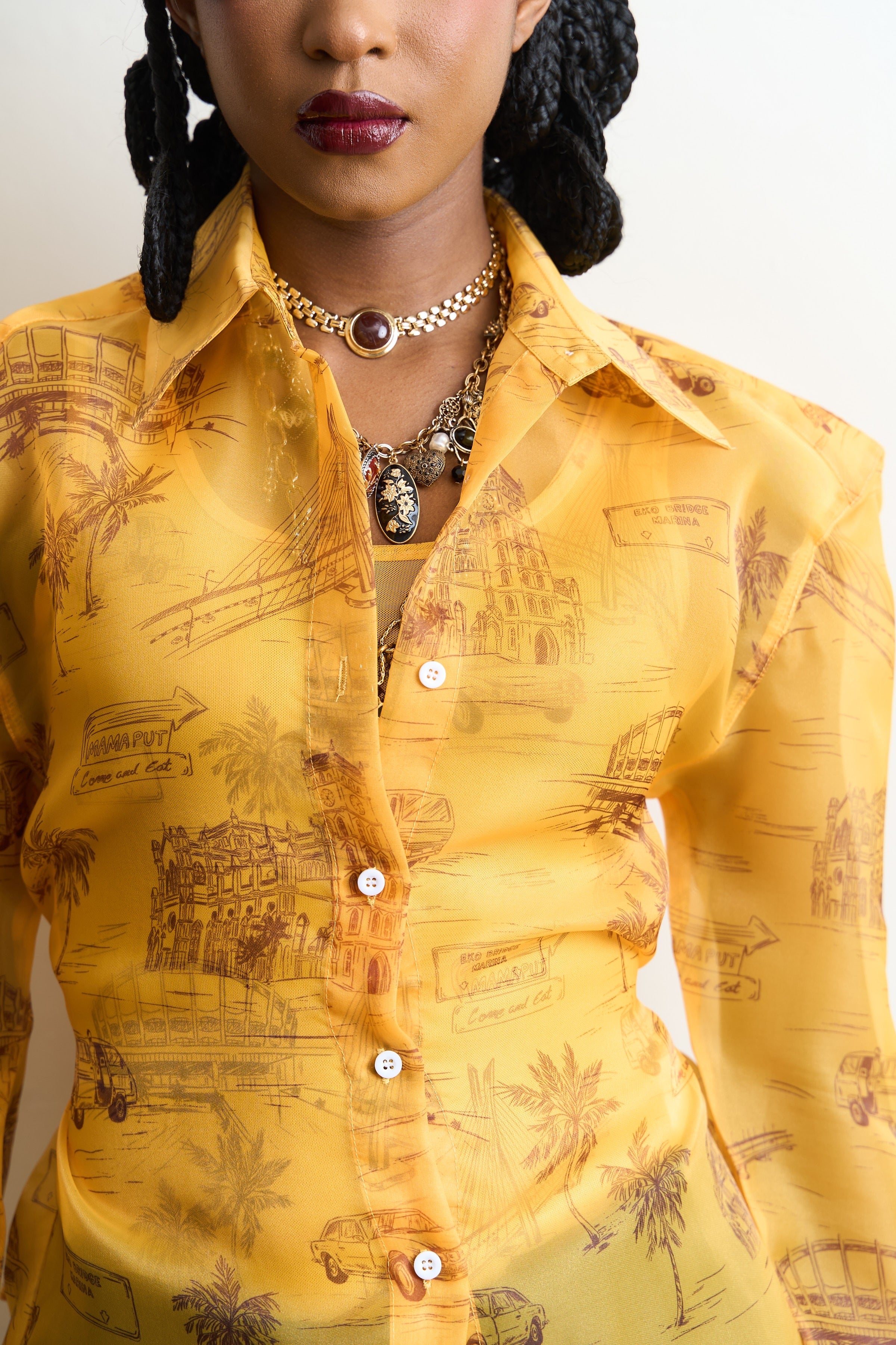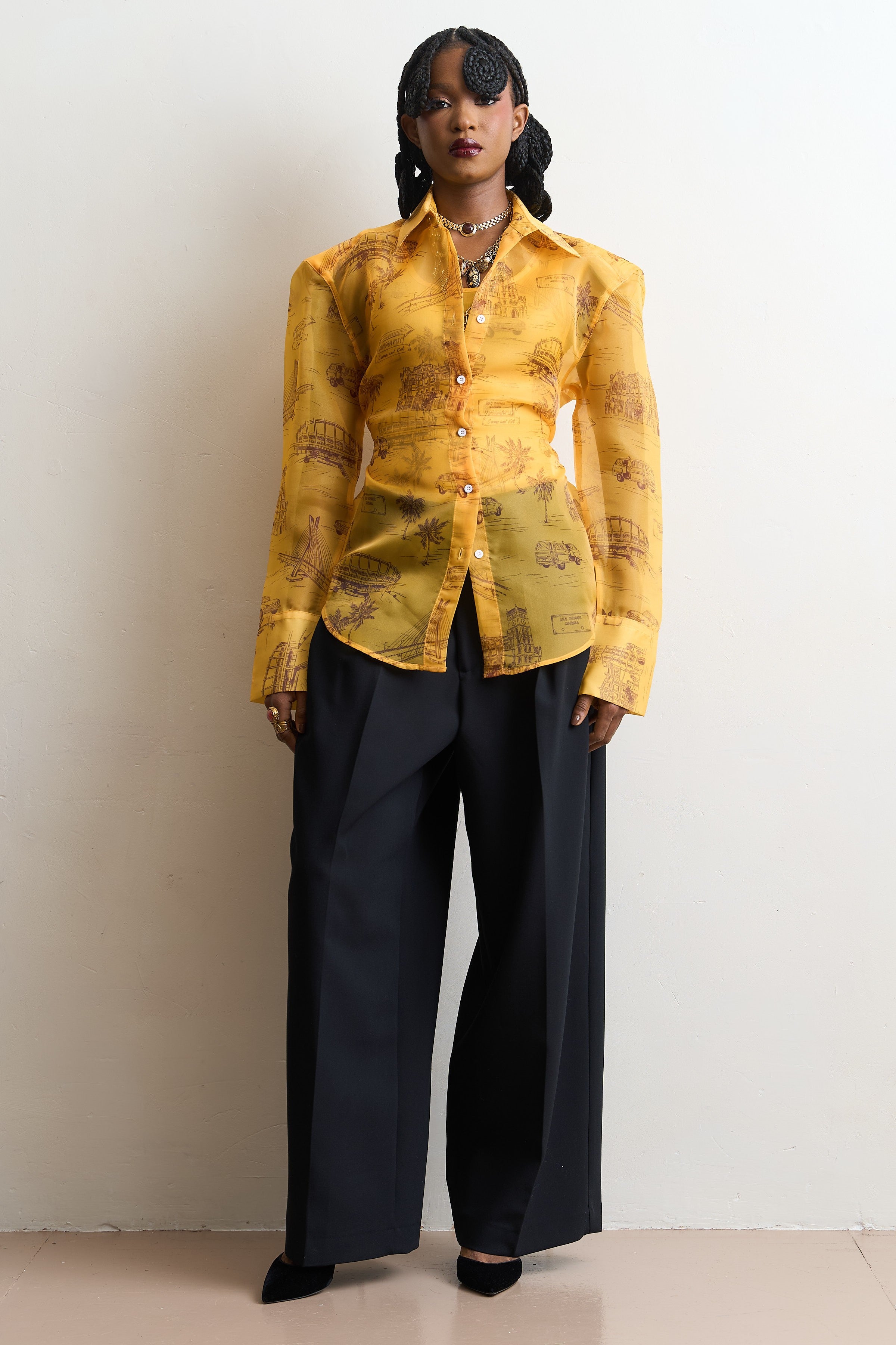 EKO ICONS ORGANZA FITTED SHIRT YELLOW