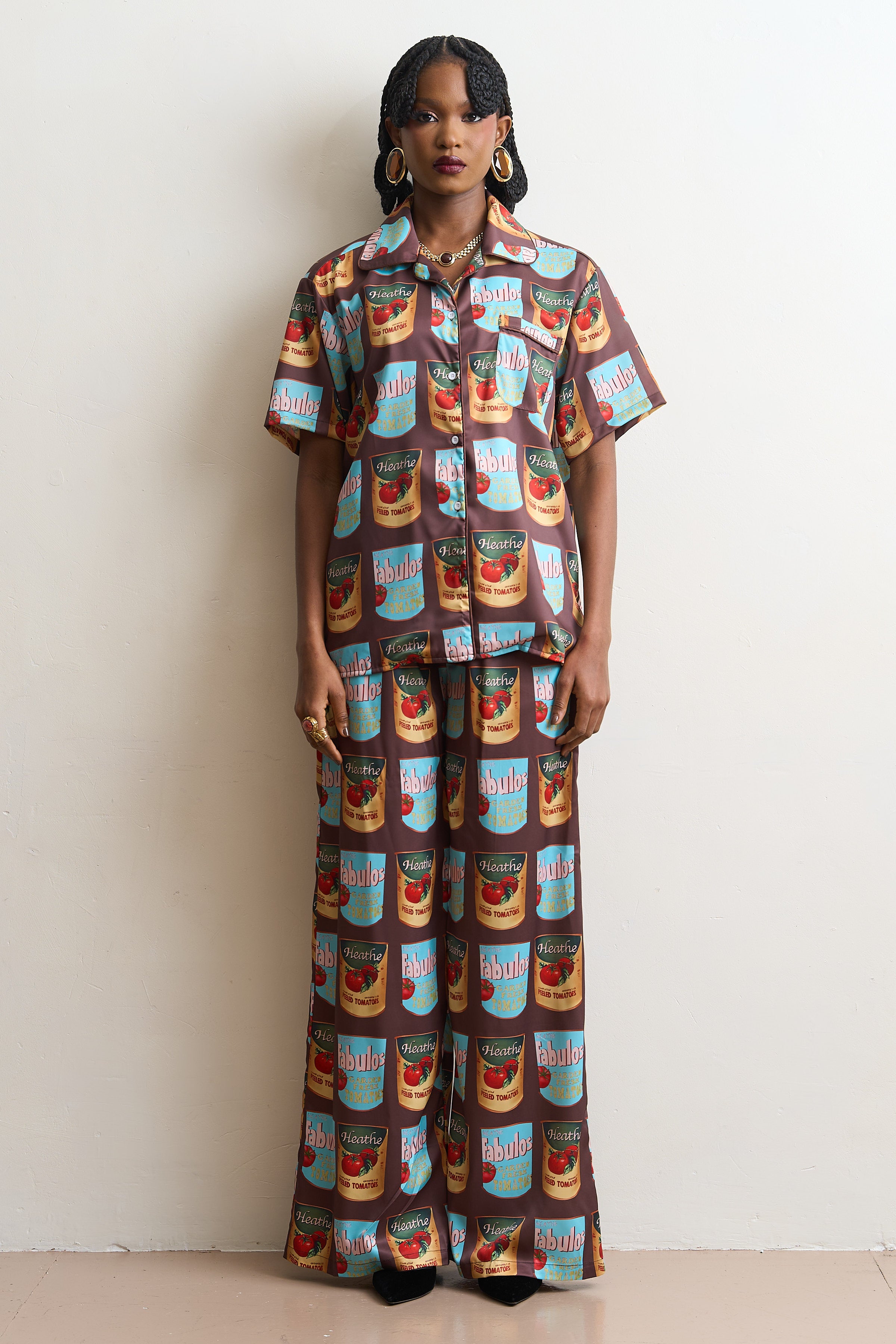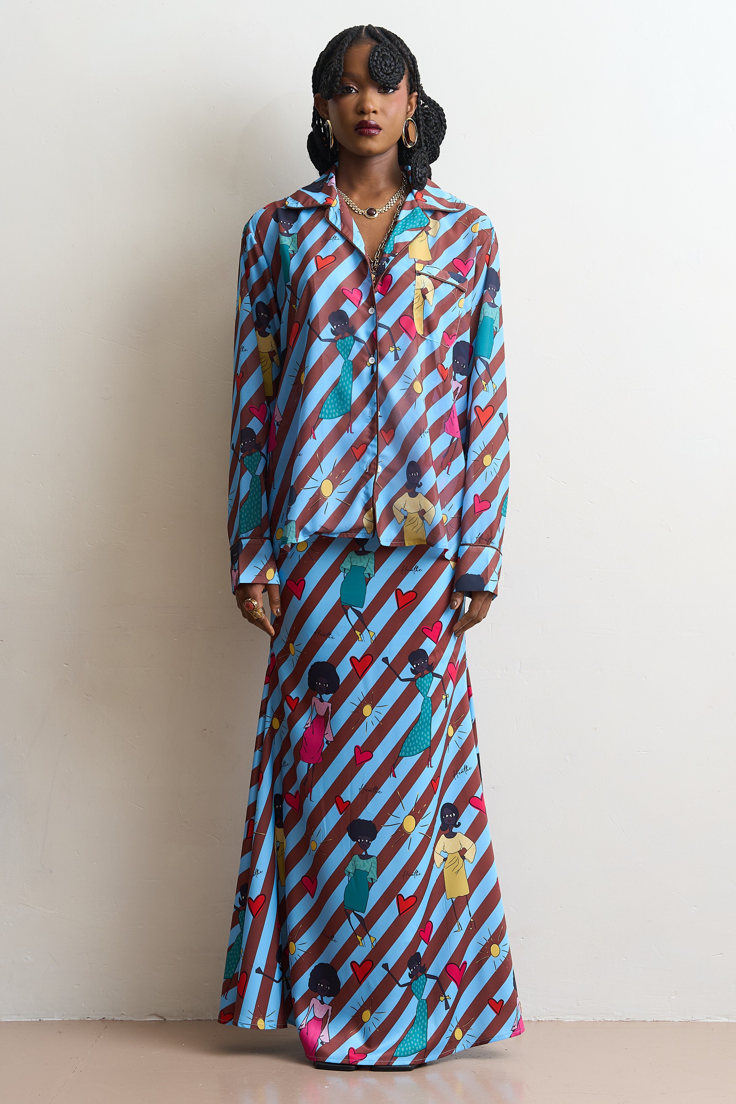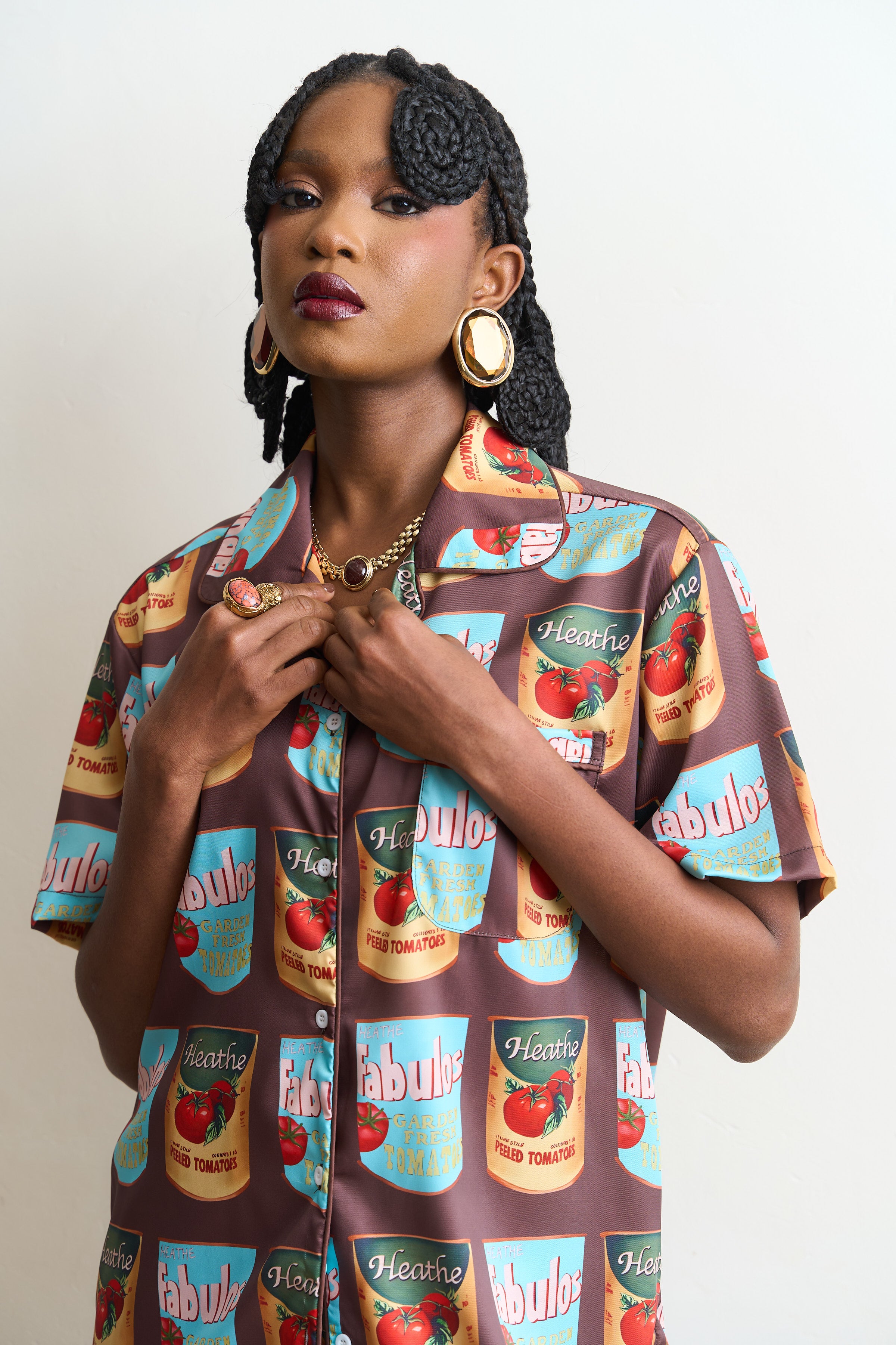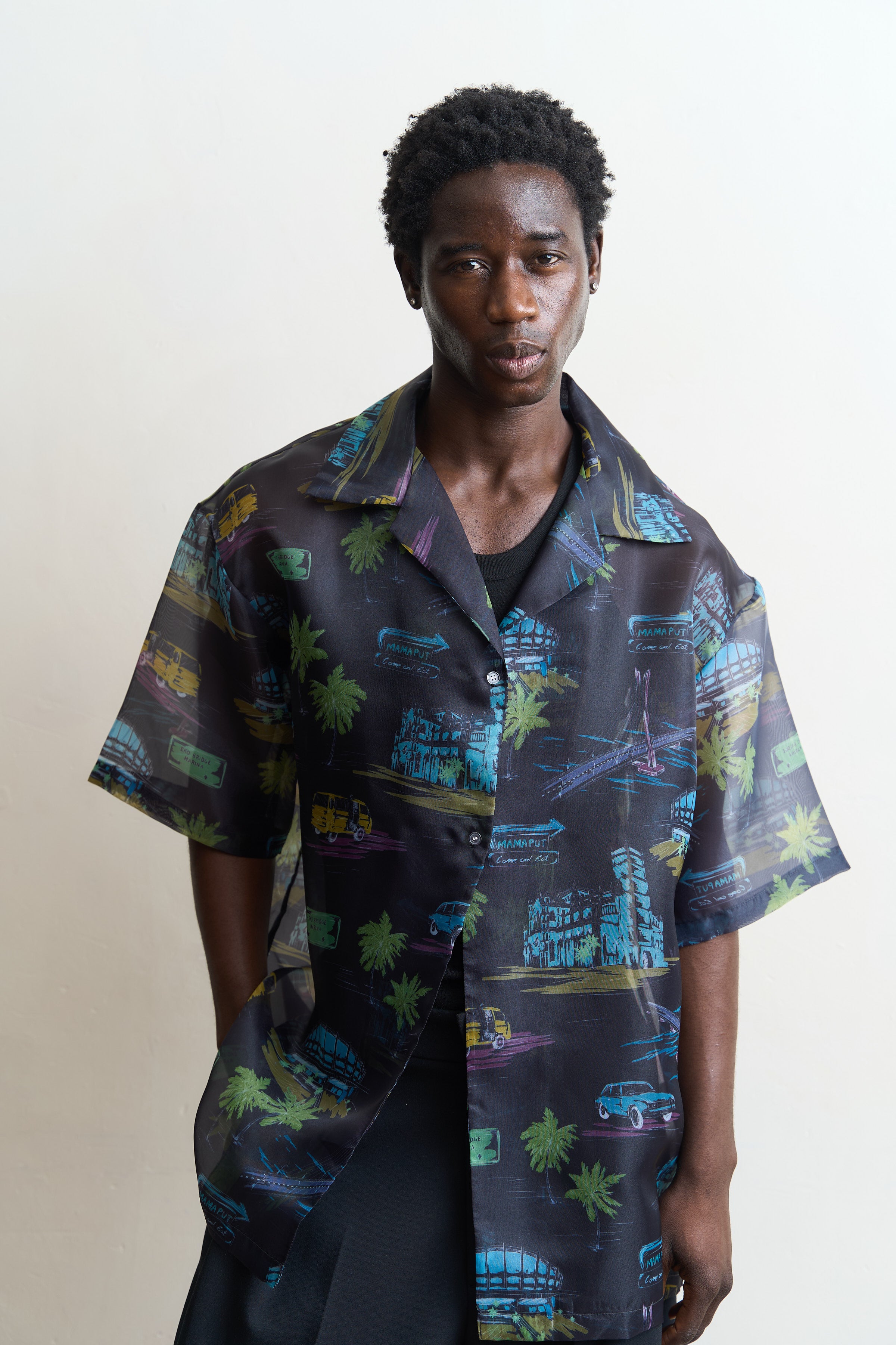 OLD LAGOS MAP PRINT ORGANZA SHIRT BROWN
