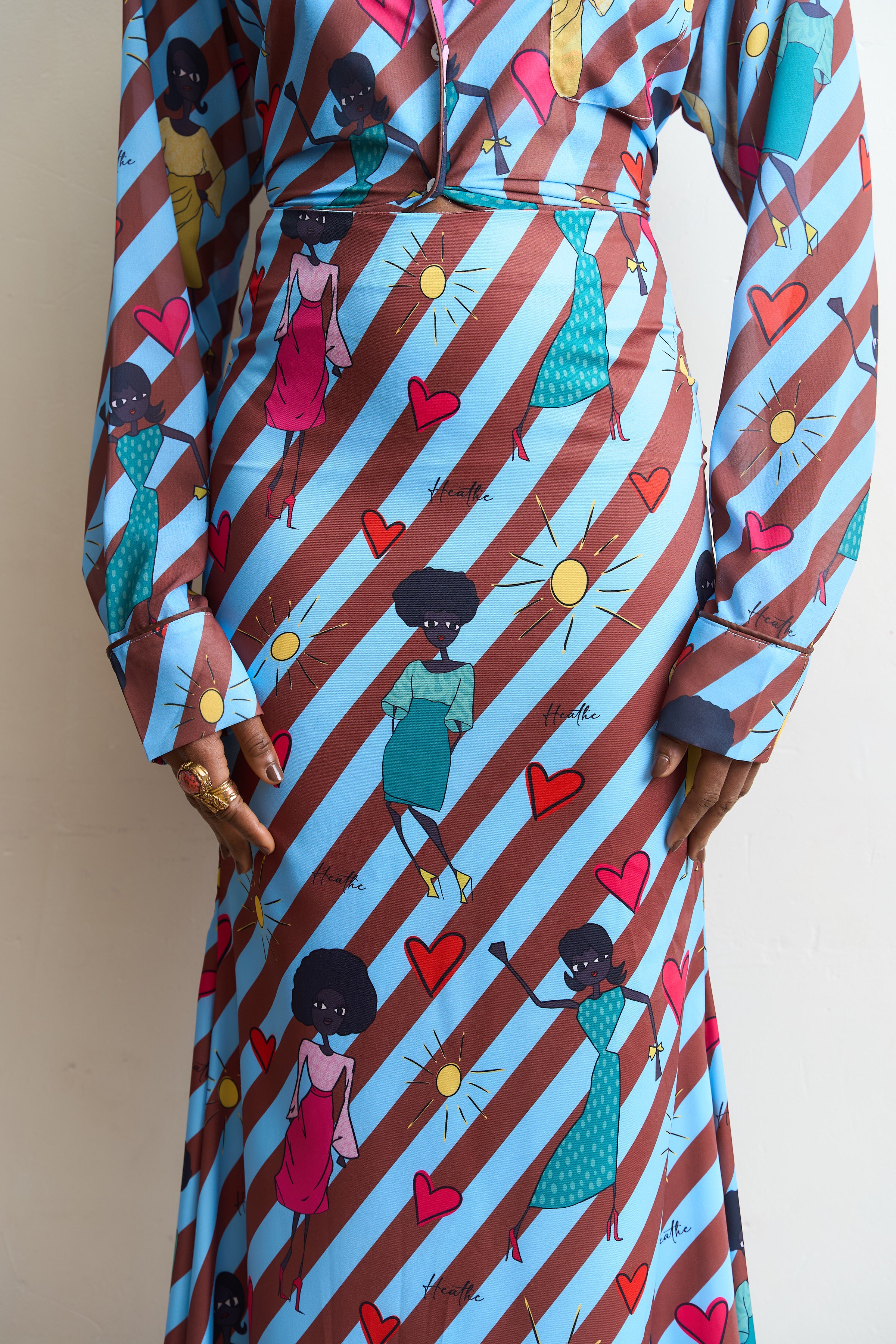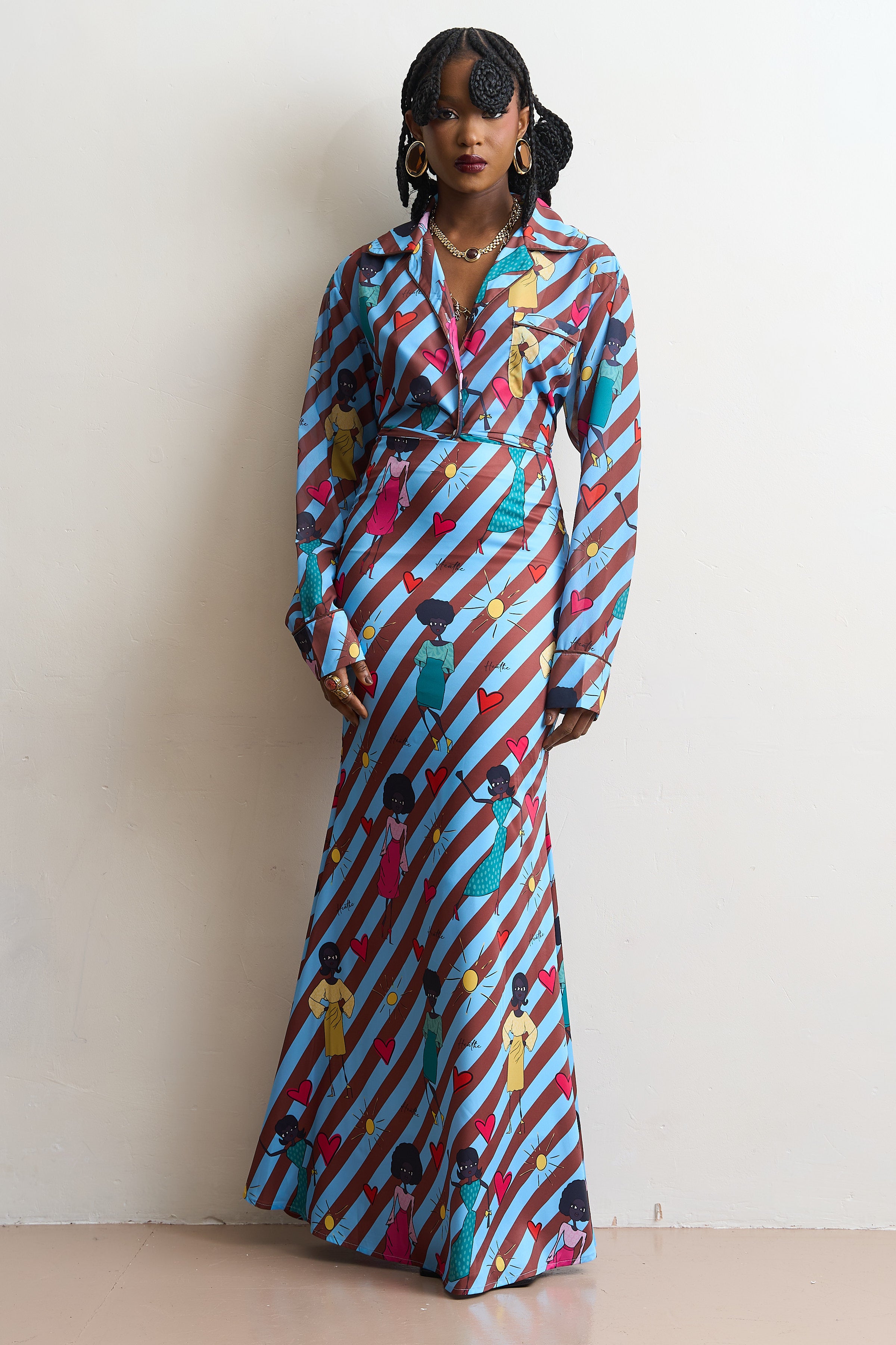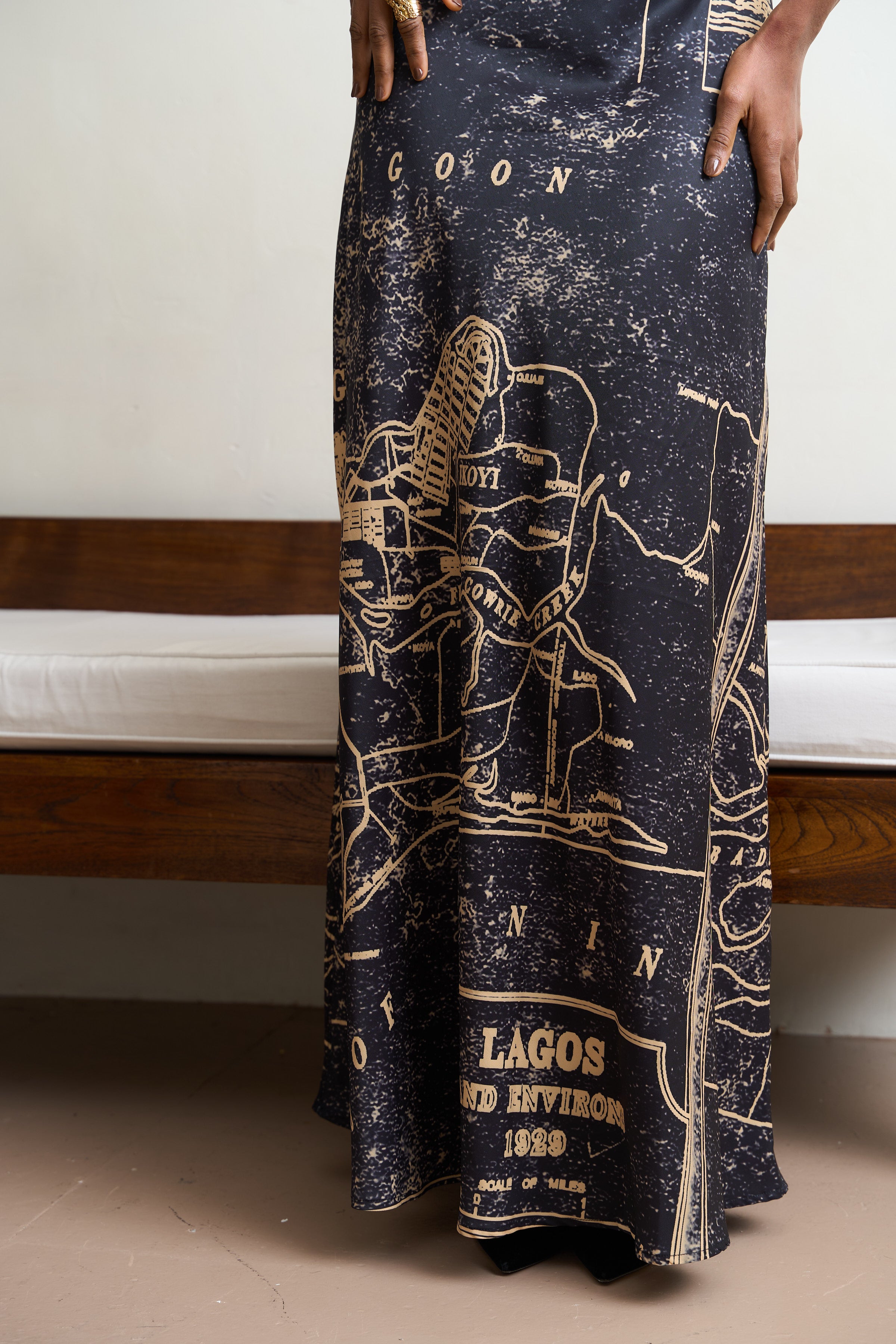 OLD LAGOS MAP PRINT SLIP DRESS BROWN