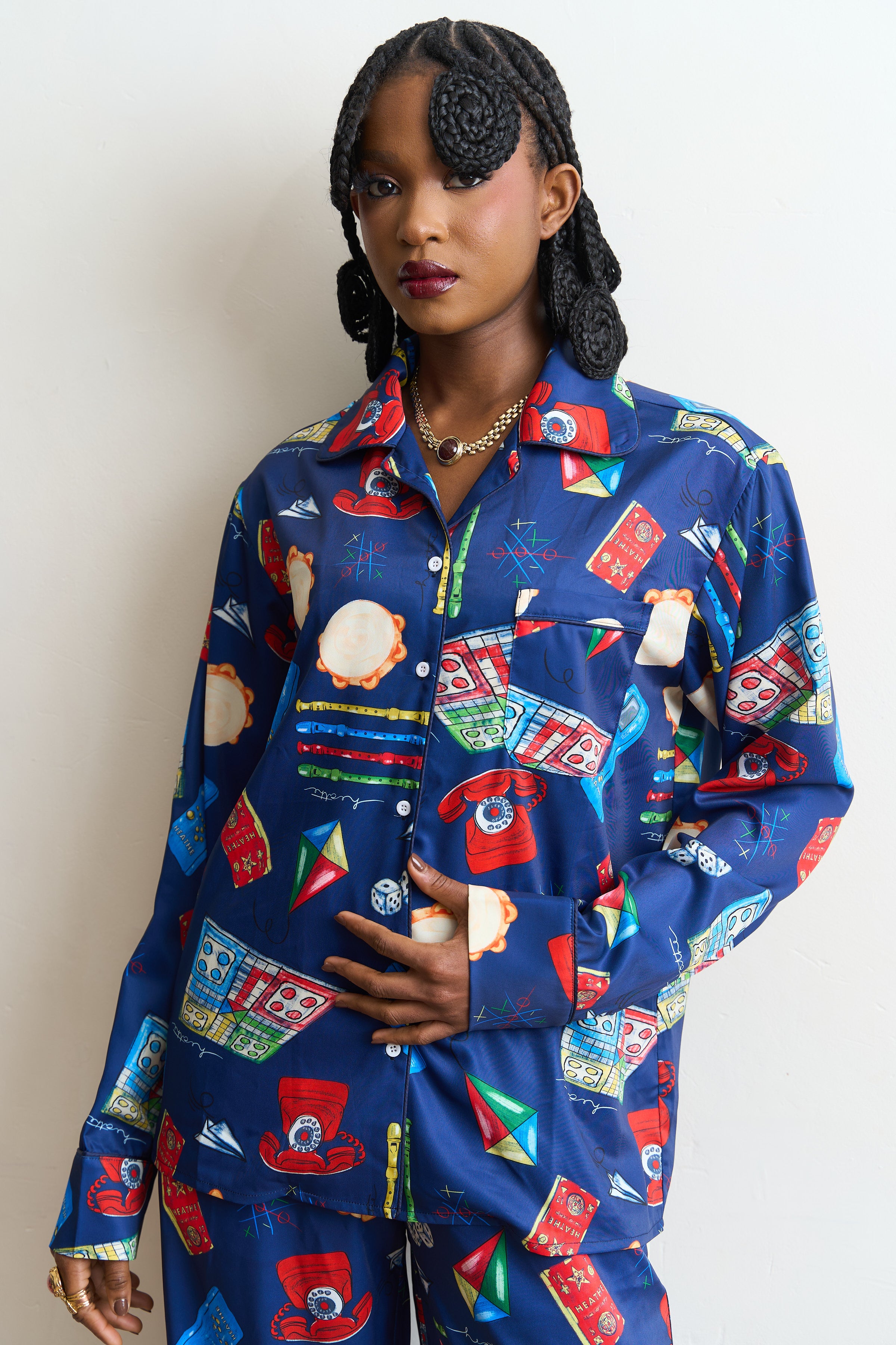 GAMES WE PLAYED ORGANZA SHIRT NAVY