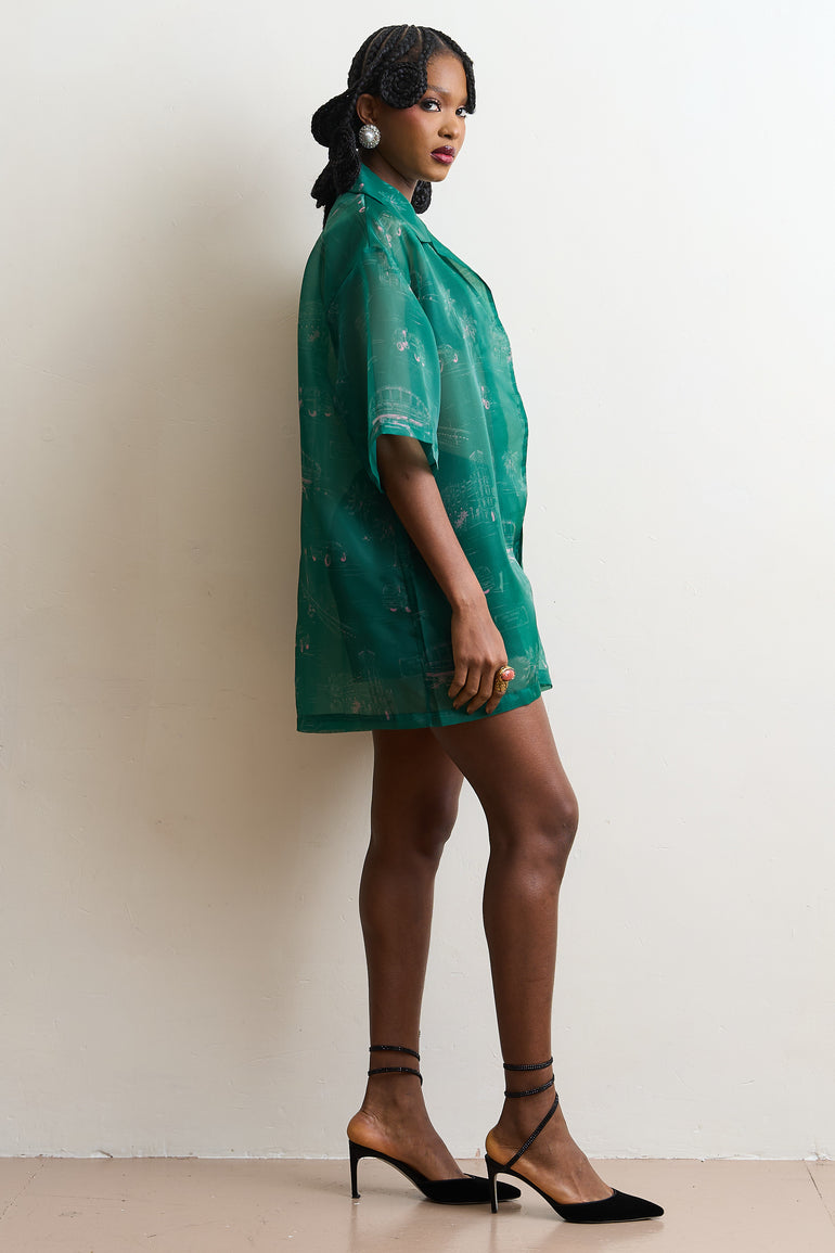 Our sheer organzas are the perfect styling pieces all year round. The oversized fit makes them ideal as a breezy cover-up in warmer climates or as a layering piece during the colder months. This style features the iconic "Eko" print".