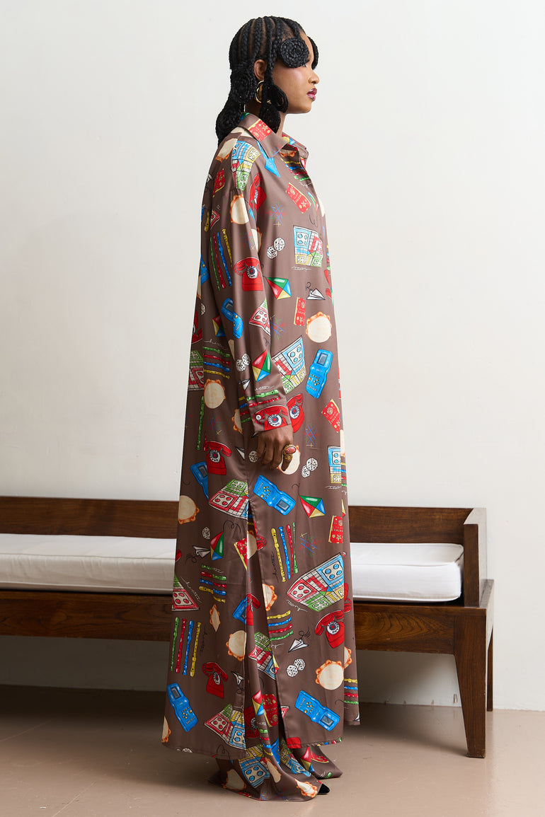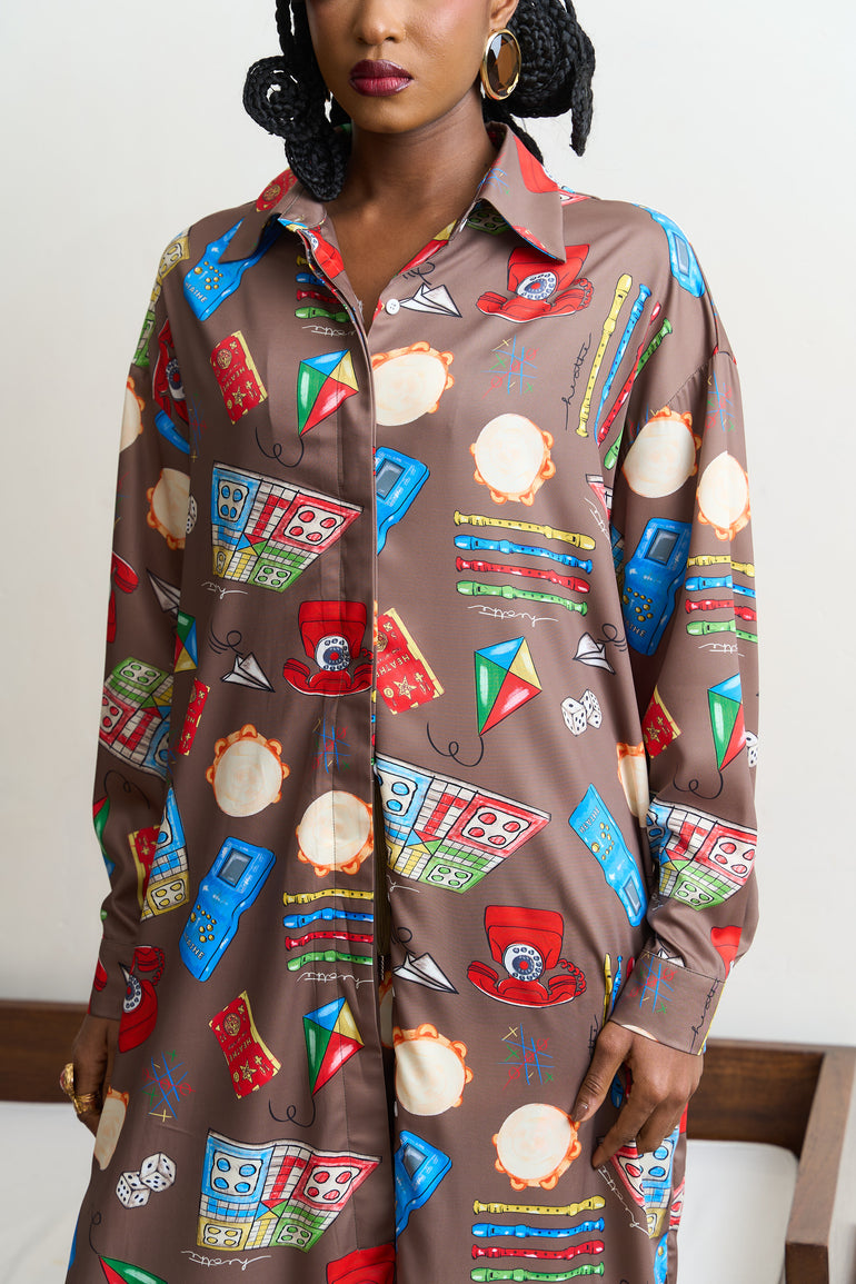 GAMES WE PLAYED MAXI SHIRT DRESS