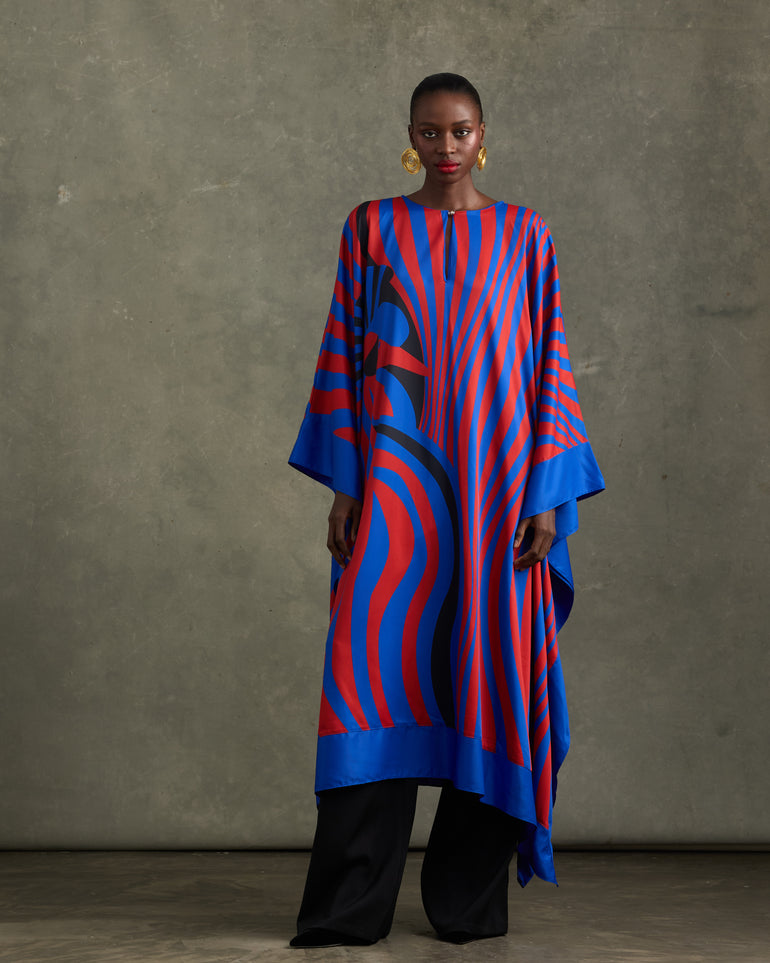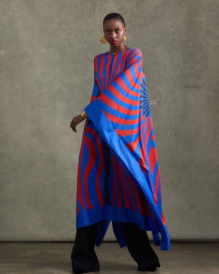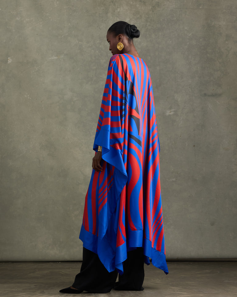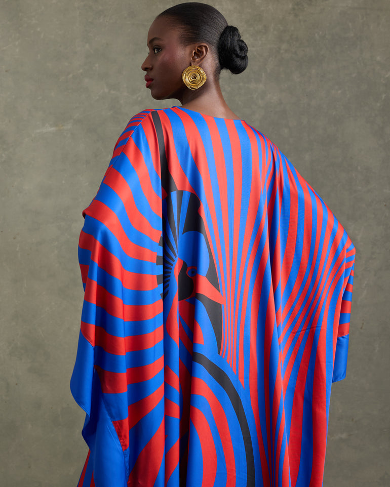 BLACK CROWN CRANE KAFTAN RED/BLUE