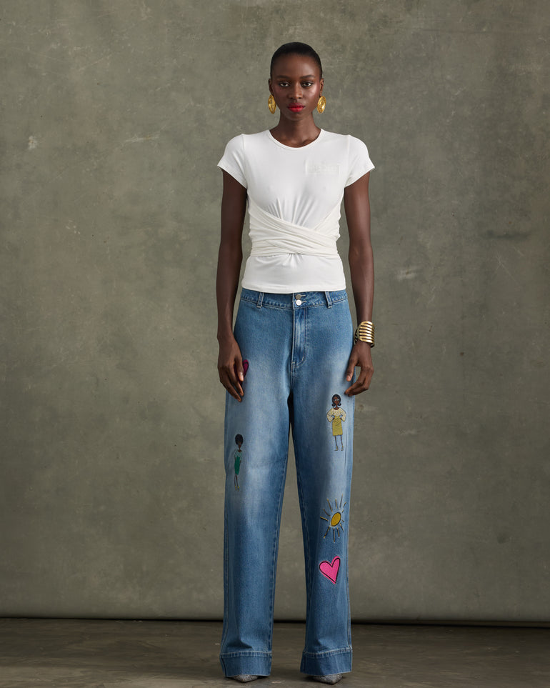 HEATHE AND DAUGHTERS EMBROIDERED T-SHIRT WITH DRAPE