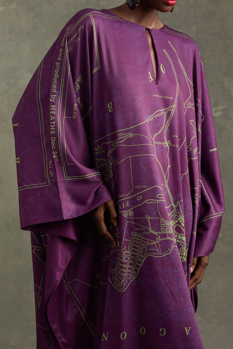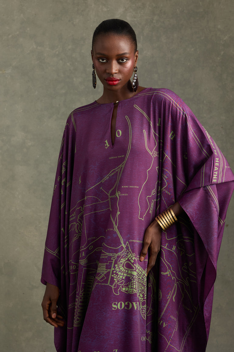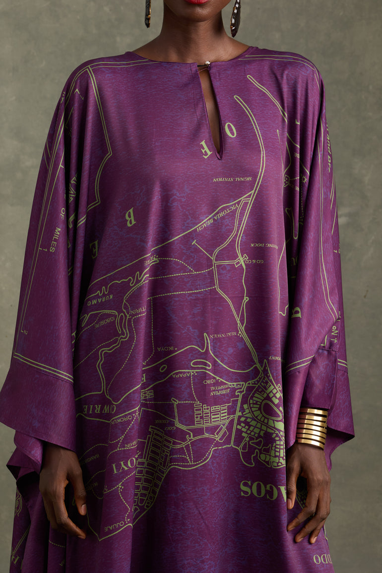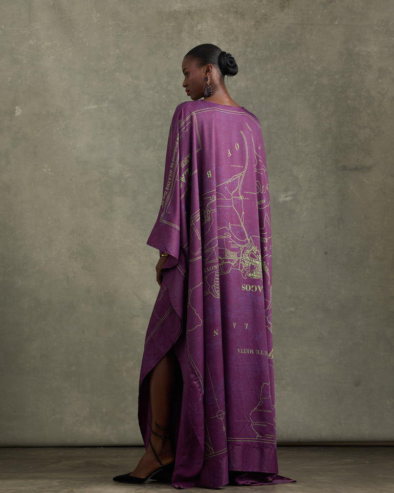 OLD LAGOS MAP KAFTAN PLUM