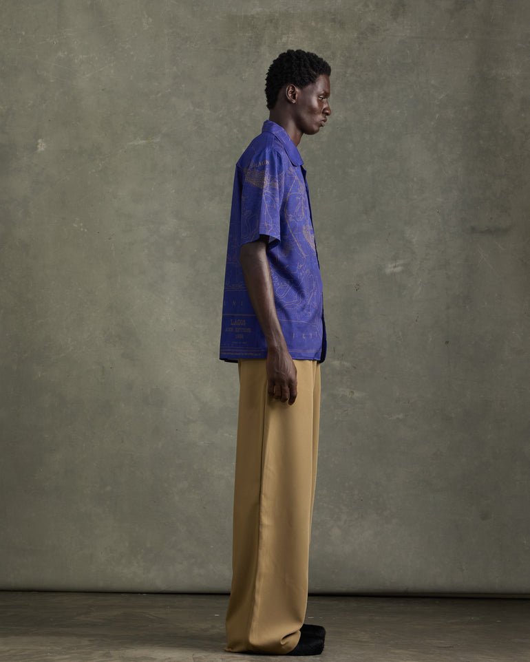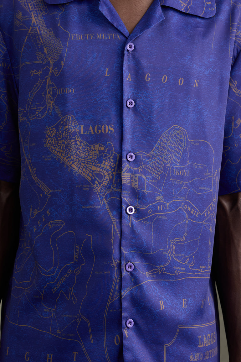 OLD LAGOS MAP SATIN SHIRT NAVY