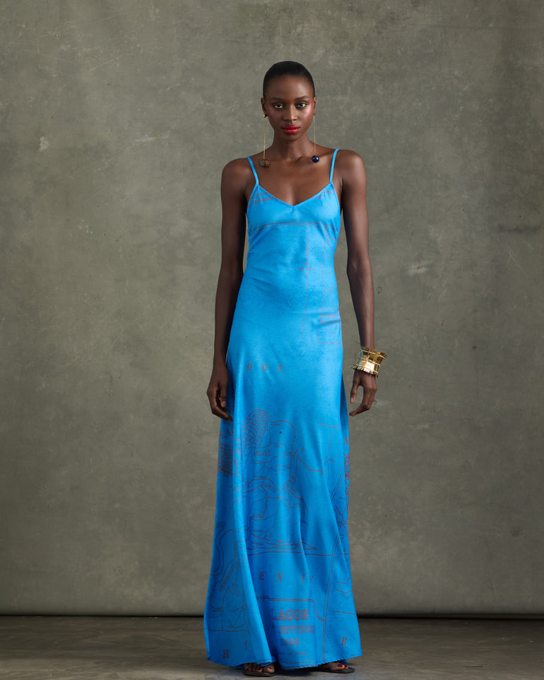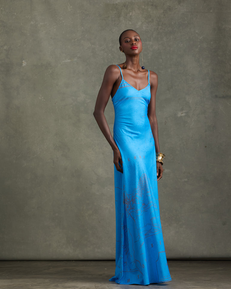 OLD LAGOS MAP SLIP DRESS MUTED BLUE