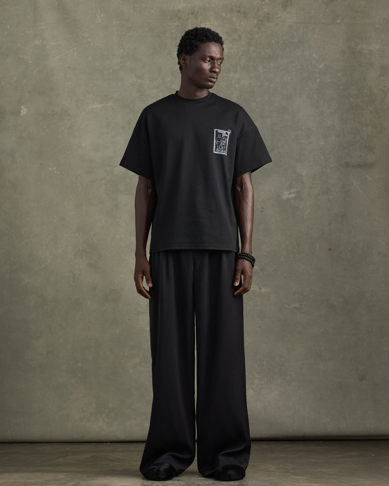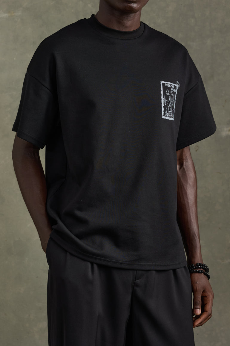Effortlessly understated yet rich in detail, the Post Stamp Shirt in a greyish-black merges minimalism with meaning. Crafted from premium cotton, this relaxed-fit tee features a contrasting stamp graphic subtly placed on the chest, with a larger motif printed on the back. The greyish-black base ensures maximum versatility- ideal for layering or wearing on its own.